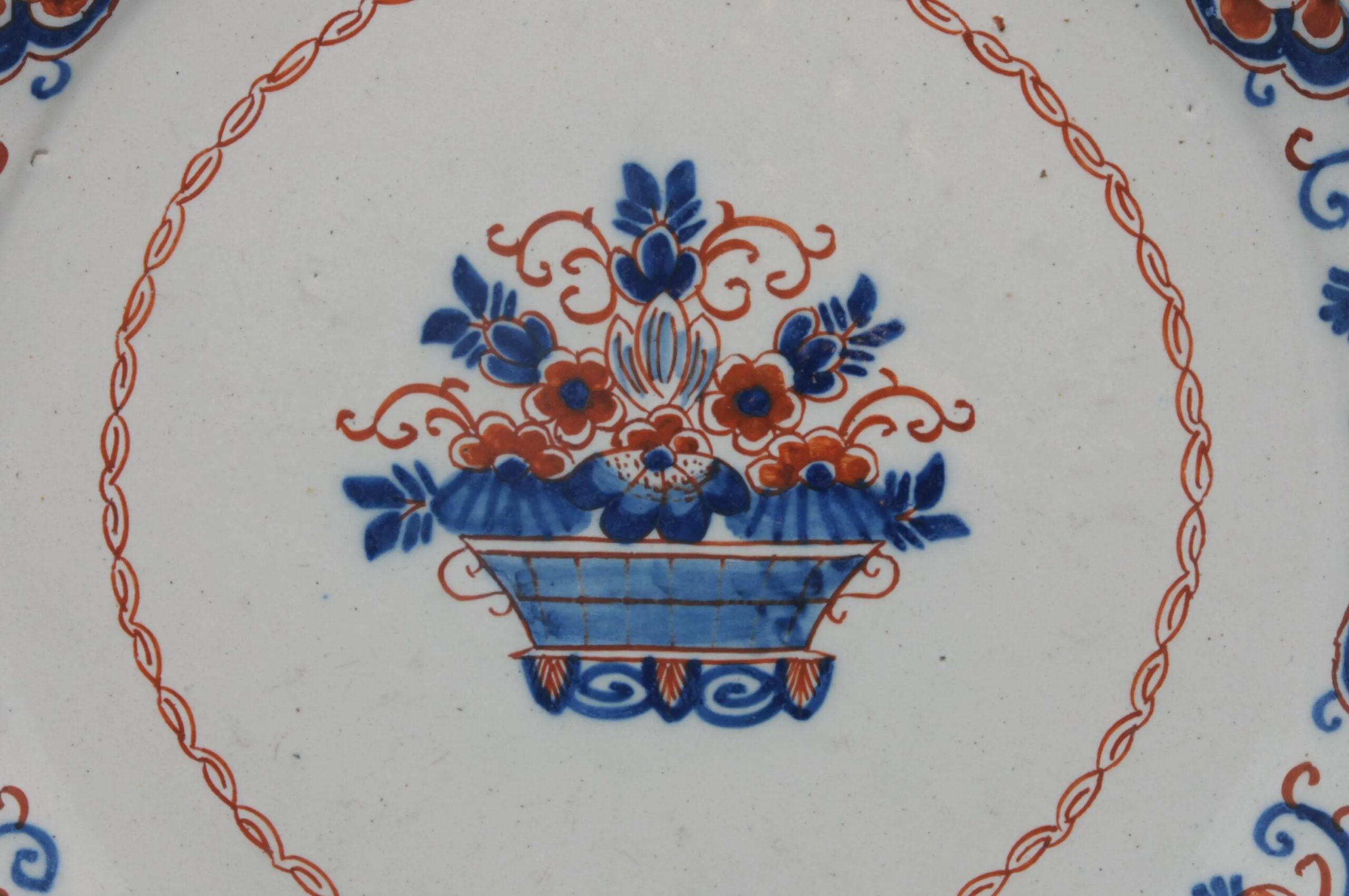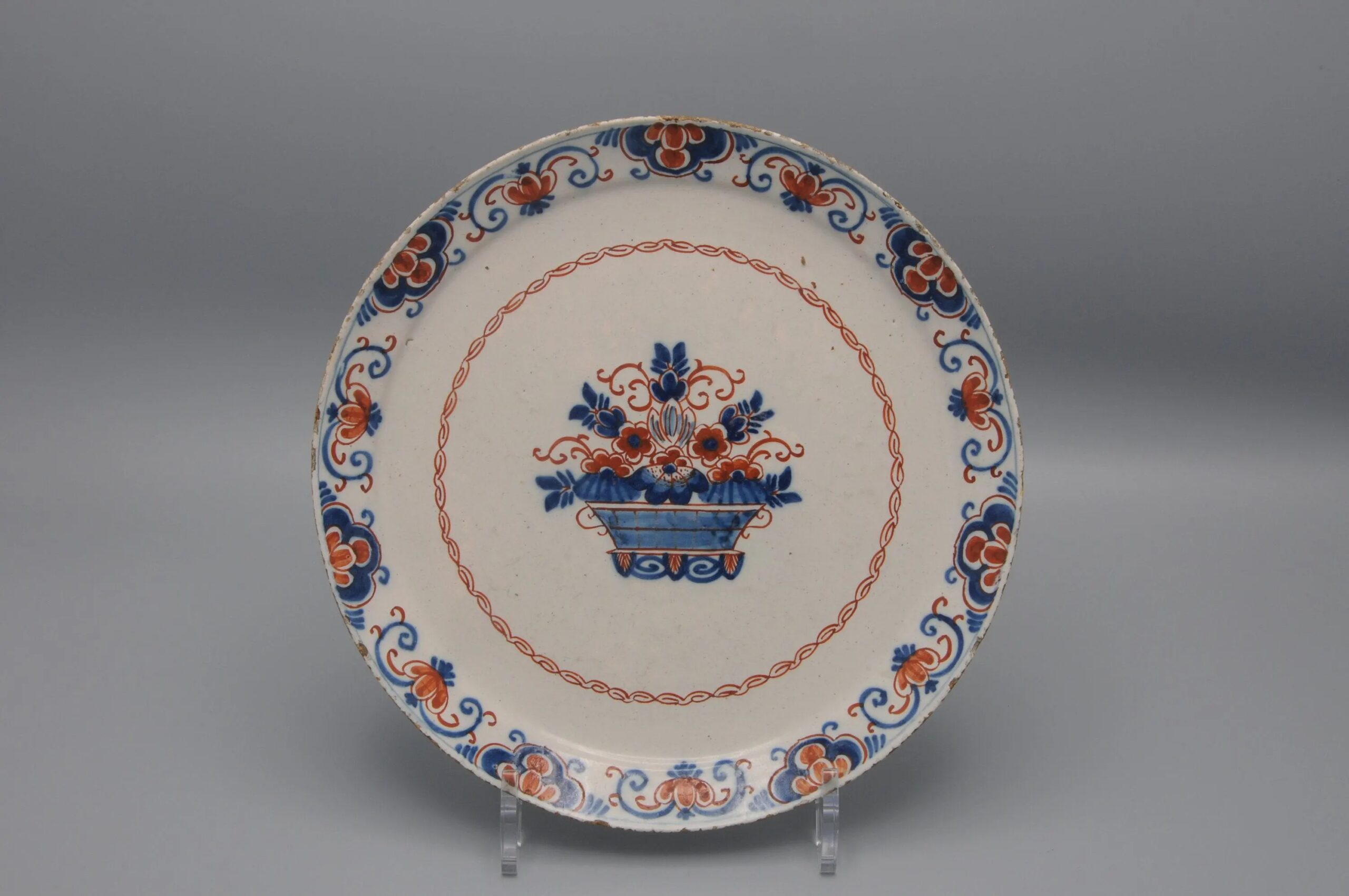 Delft – Polychrome Delftware plate with Flower Basket – Van Lockhorst, 18th century